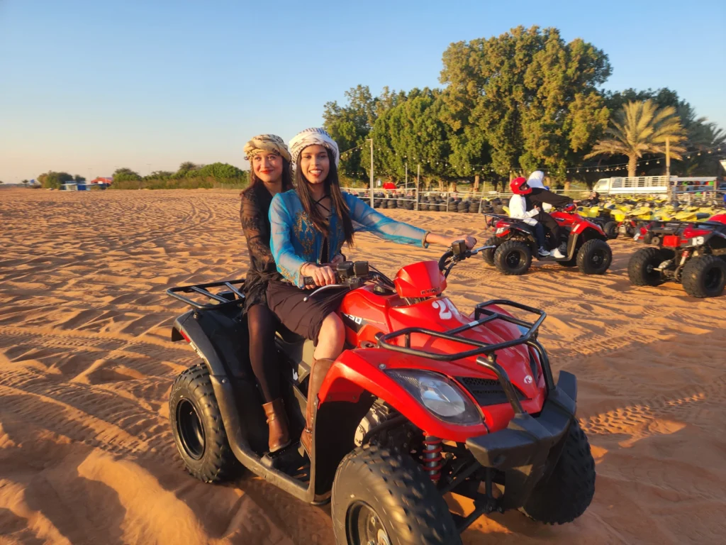 While the quad biking gets your heart racing, the package ensures you enjoy a full spectrum of desert fun, making it an ideal evening desert safari with the Polaris ATV quad bike option: